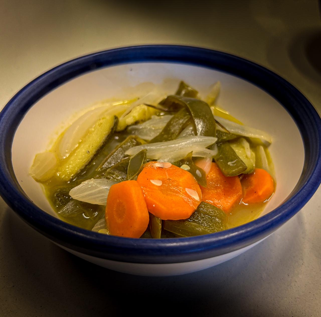 - Tapa y cocina a fuego bajo por 20 minutos, hasta que las verduras estén suaves.