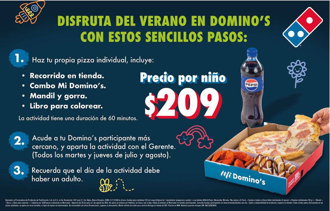 Para los papás que quieran sumar a sus hijos a esta experiencia de verano en Domino’s, la clave está en reservar con anticipación en la sucursal participante. Los horarios son limitados y los grupos pequeños, así que conviene planearlo con tiempo. Todos los detalles sobre sucursales, fechas y condiciones están en la página oficial de Domino’s.